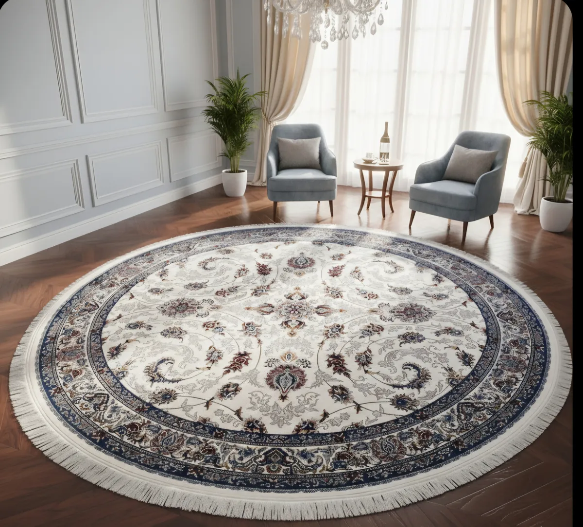 Transforme seu espaço com o Tapete Clássico Irã Redondo de 2,00 M, um item que traz a elegância do estilo persa para o seu ambiente. Feito em poliéster e polipropileno, este tapete combina durabilidade e conforto, ideal para quartos e salas de estar. Seu design clássico e sofisticado se adapta perfeitamente a diferentes estilos de decoração, proporcionando um toque de requinte. A textura suave e a paleta de cores harmoniosa fazem deste tapete uma escolha versátil, capaz de complementar tanto ambientes modernos quanto tradicionais. Além disso, sua forma redonda cria um ponto focal atraente, ideal para áreas de convivência. Invista em um produto que não apenas embeleza, mas também transforma a atmosfera do seu lar. O Tapete Clássico Irã é uma peça que reflete bom gosto e atenção aos detalhes, sendo uma adição perfeita para quem busca qualidade e estilo. Aproveite a oportunidade de enriquecer sua decoração com um item que une estética e funcionalidade. Origem Irã Composição: Poliéster, algodão, juta e PP Altura do fio: Fio Heat Set 08 mm Acabamento: Debrum e franja. Pontos: 2.100.000 m2 Peso: 2,750 m2 Tamanhos disponívies: 0,50 x 0,80/0,80 x 1,20m 0,80 x 2,50/ 0,80 x 3,00/0,80 x 4,00/ 0,80 x 6,00/ 1,00 x 2,00/ 1,50 x 2,20 / 2,00 x 2,50/ 2,00 x 3,00/ 2,50 x 3,50/ 3,00 x 4,00/2,00 m redondo.