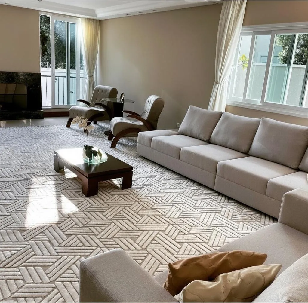 Além de sua aparência atraente, o tapete oferece uma superfície agradável ao toque, proporcionando uma experiência de aconchego e conforto ao caminhar. Ideal para reuniões familiares ou momentos de lazer, ele se destaca pela praticidade e funcionalidade, adicionando valor à sua casa.