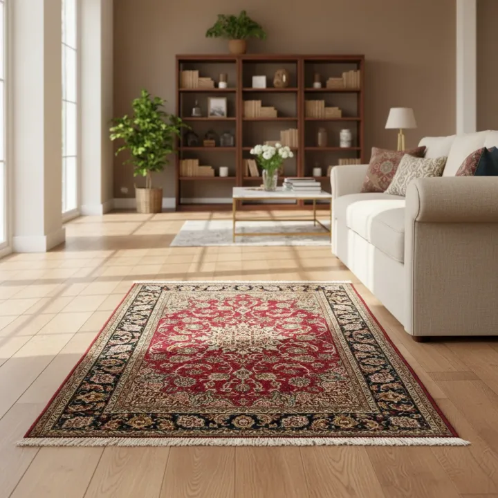 Fabricado com uma rica combinação de lã, algodão e seda, este tapete não apenas embeleza, mas também proporciona uma sensação de conforto sob os pés. Seu estilo persa é caracterizado por padrões vibrantes e detalhados, que se destacam e atraem a atenção, complementando qualquer decoração.