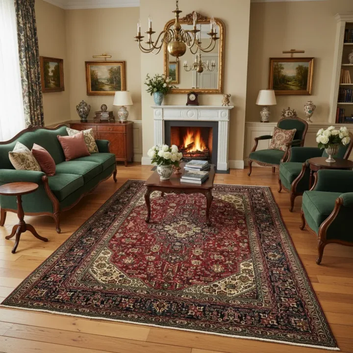 Como característica dessas peças, encontramos tons avermelhados e outras cores ligadas à natureza, assim como seus desenhos. Esses tapetes faziam parte do cotidiano persa, como parte importante de suas casas.